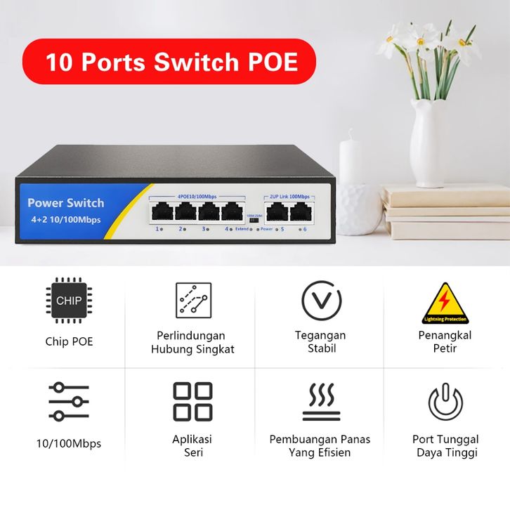 XIHANCAM Switch POE 4 Port 10/100Mbps Network Switch Hub Desktop POE 4+2 Smart Switch POE CCTV RJ45