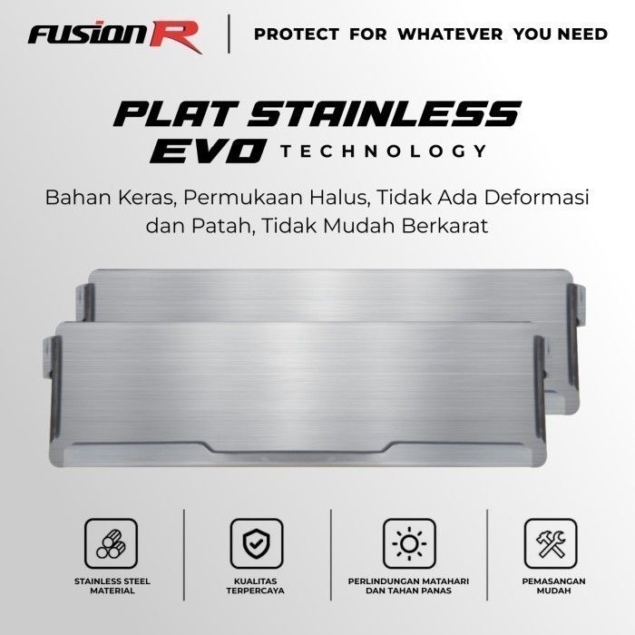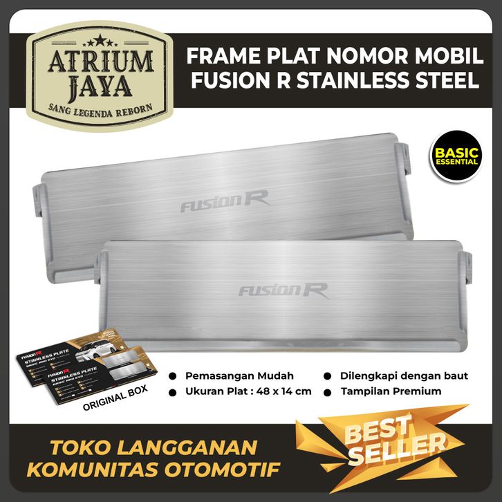 BEST SELLER Tatakan Dudukan Cover Frame Tempat Plat Nomor Mobil Fusion R Stainless Steel Pejabat antti kaarat SET Origi