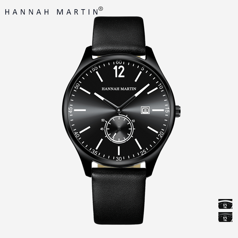 HANNAH MARTIN Jam Tangan Pria 100% Original Model Terbaru Keren Chrono Aktif Quartz COWOK Kulit Anti Air Men Watch Ori