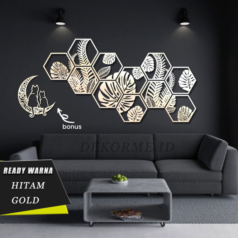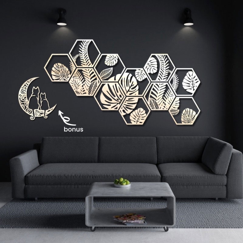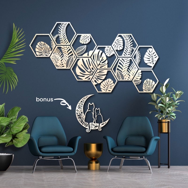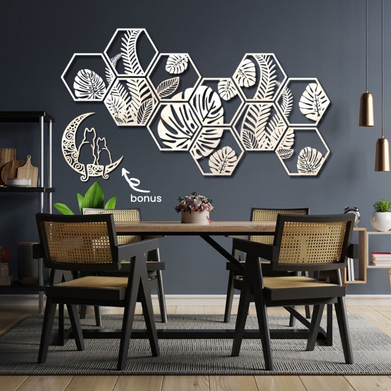 Hiasan Dinding Kayu Aesthetic Pajangan Ruang Tamu Motif Hexagon Monstera Wall Decor Laser Cut ORIGINAL TERLARIS