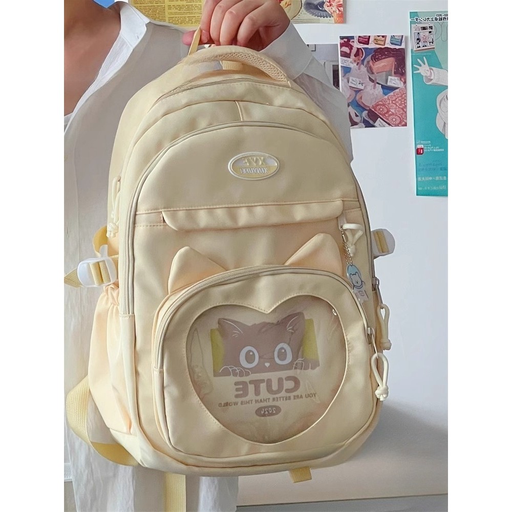 Tas Sekolah Kucing Lucu Wanita Tas Bahu Gadis korea import fashion Perjalanan Kuliah tas ransel laptop Kapasitas Besar b