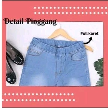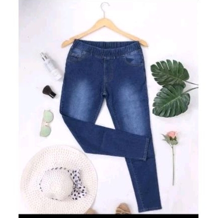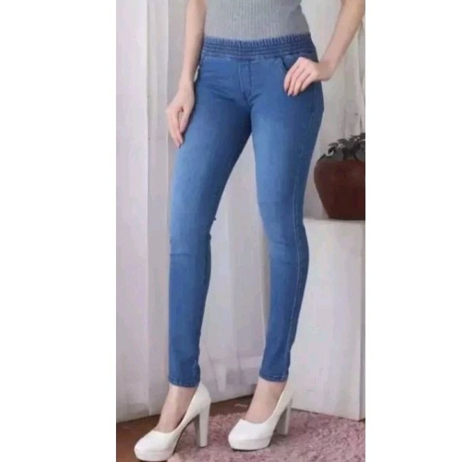 legging jeans wanita jumbo celana pinggang karet lejing jeging panjang