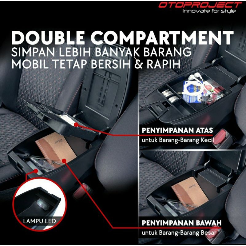 OTOPROJECT Console Box / Armrest tangan with usb hitam Honda Brio, BRV, Mobilio