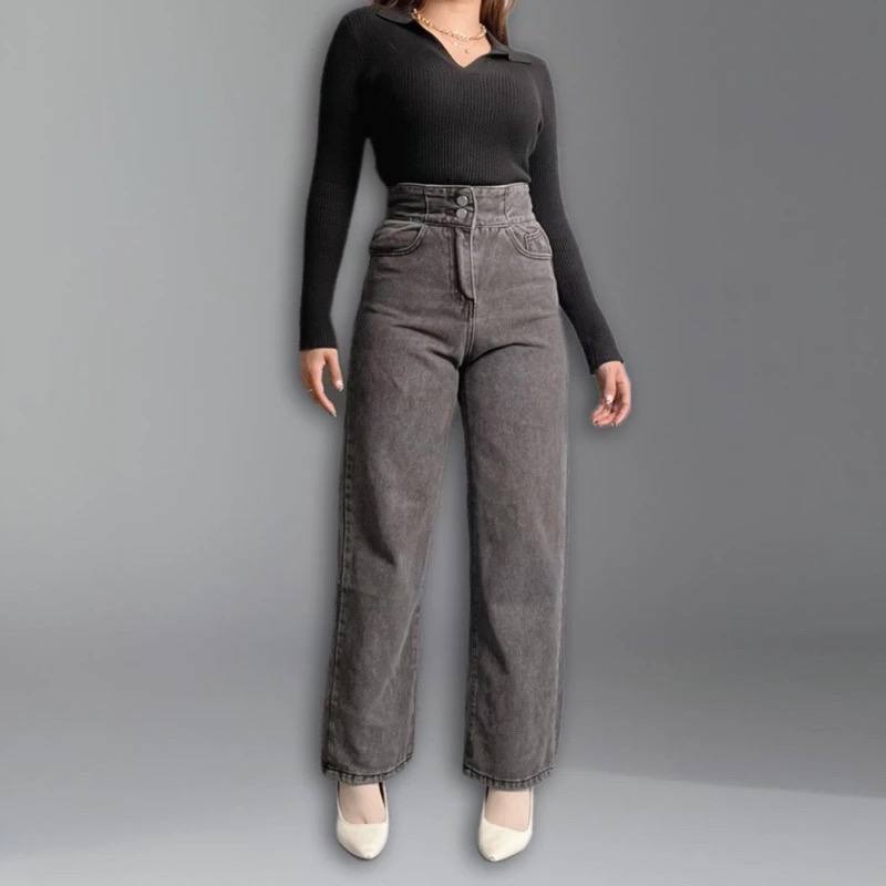 Celana Kulot Jeans Otentik J23 - Highwaist Kulot Jeans Loose Wanita - Celana Kulot Silang Premium