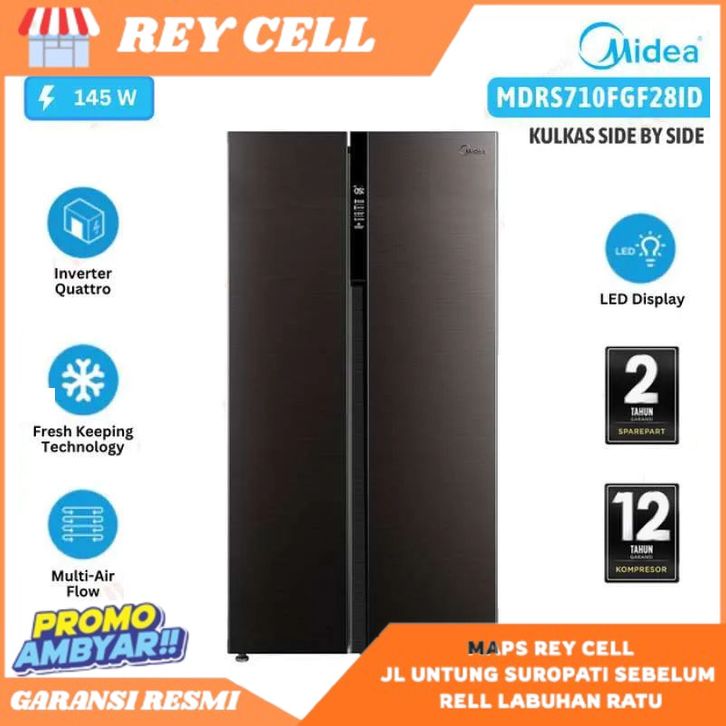 MIDEA MDRS710FGF28ID Kulkas Side By Side Inverter 532 Liter MDRS710 BLACK Garansi Resmi