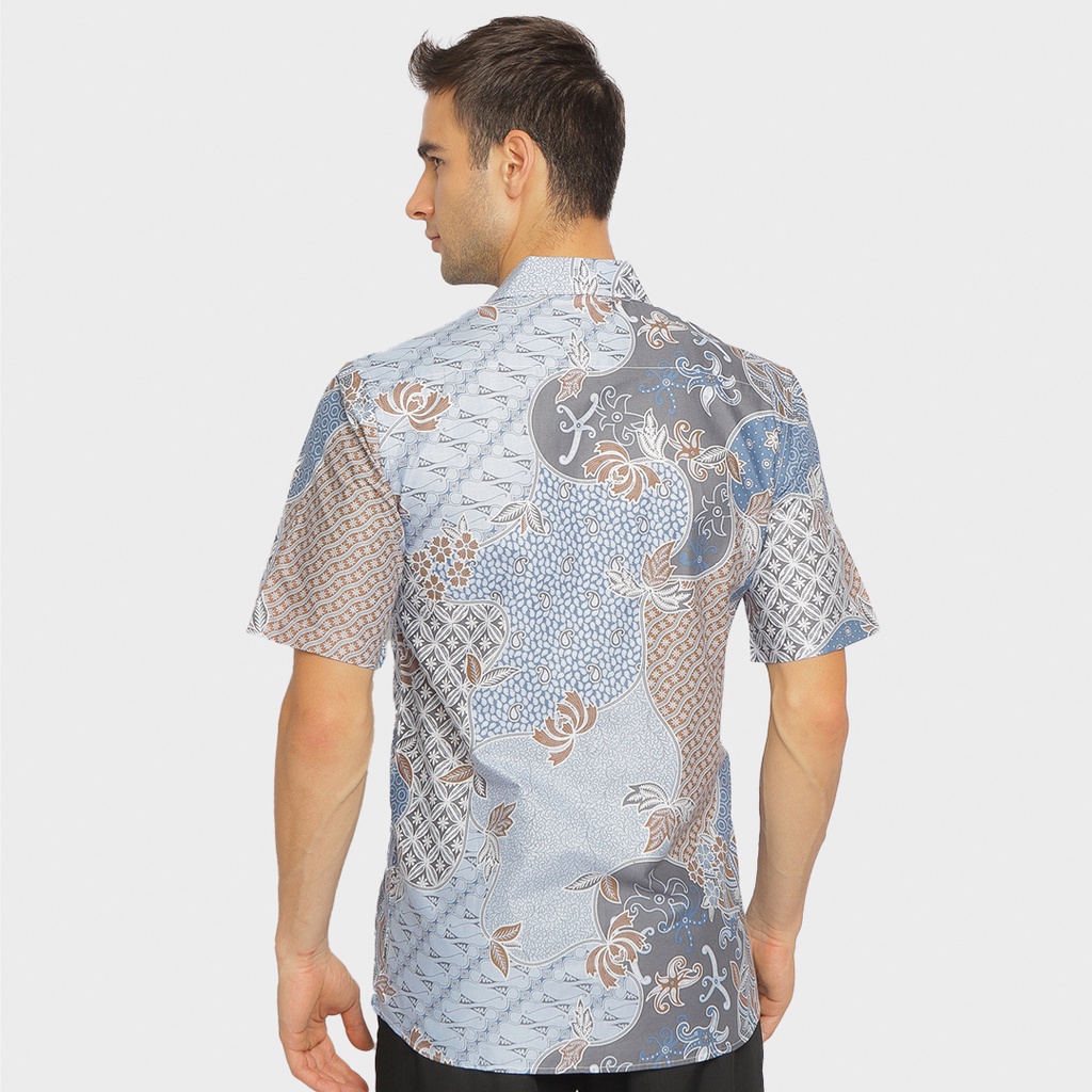 JAYASHREE - Gyan Blue Bahan Katun Premium - Kemeja Kerja Batik Pria Slimfit Lengan Pendek