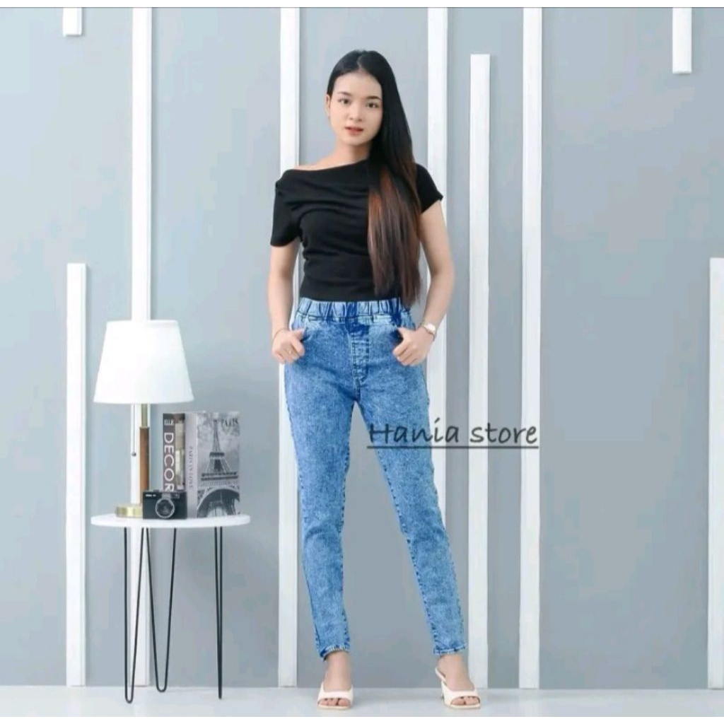 Celana Jeans Wanita Jumbo - Pinggang Karet - Denim Street Melar Bahan Premium Terbaru Kekinian