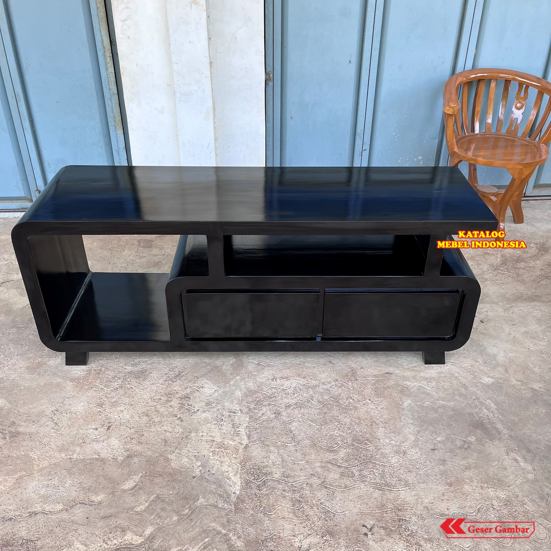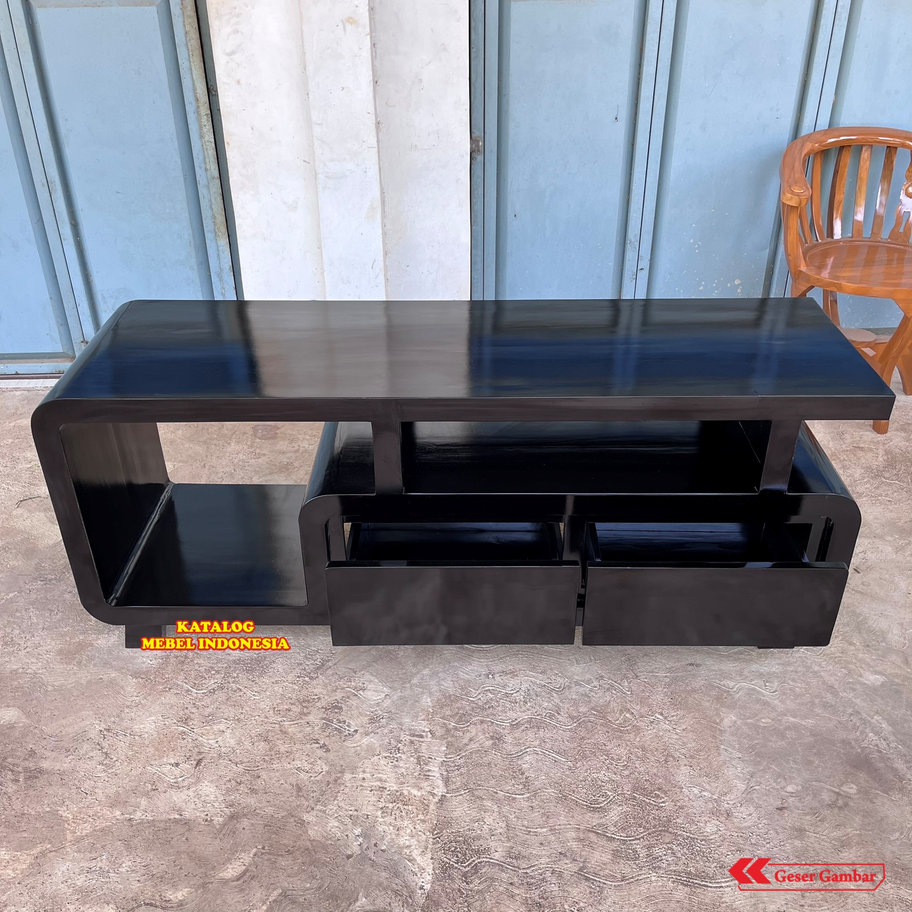 Meja TV Kayu Minimalis Hitam dengan 2 Laci - Rak TV Modern Buffet TV Serbaguna Varian G