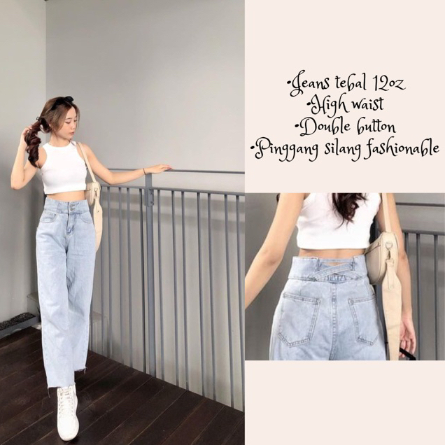 Thirteen Otentik Jeans J23 Celana Kulot Jeans Loose Highwaist wanita Unfinished Baggy Jeans High Waist Premium