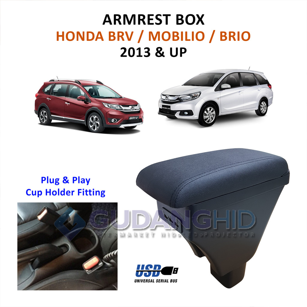 Armrest Mobil Khusus Honda Brio Mobilio BRV Luxury 3 USB Port Charger + LED Kulit