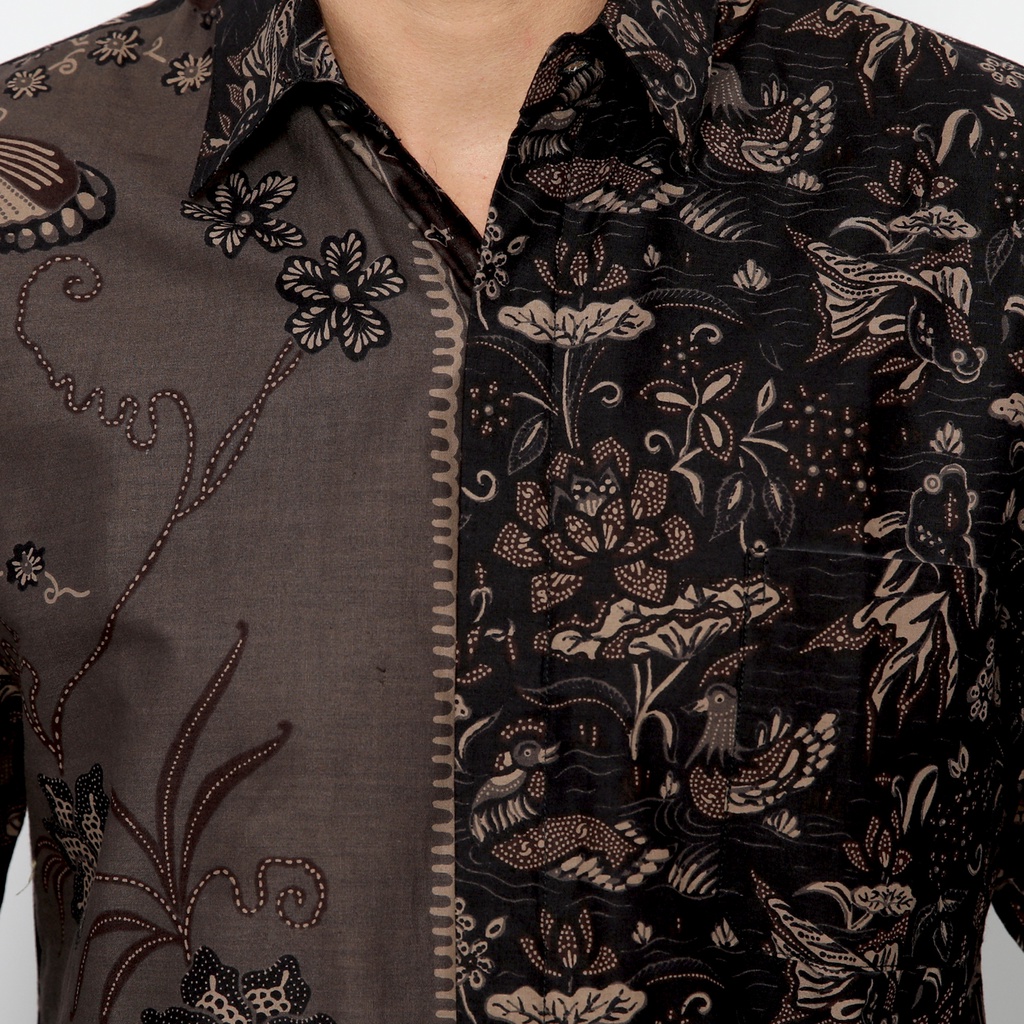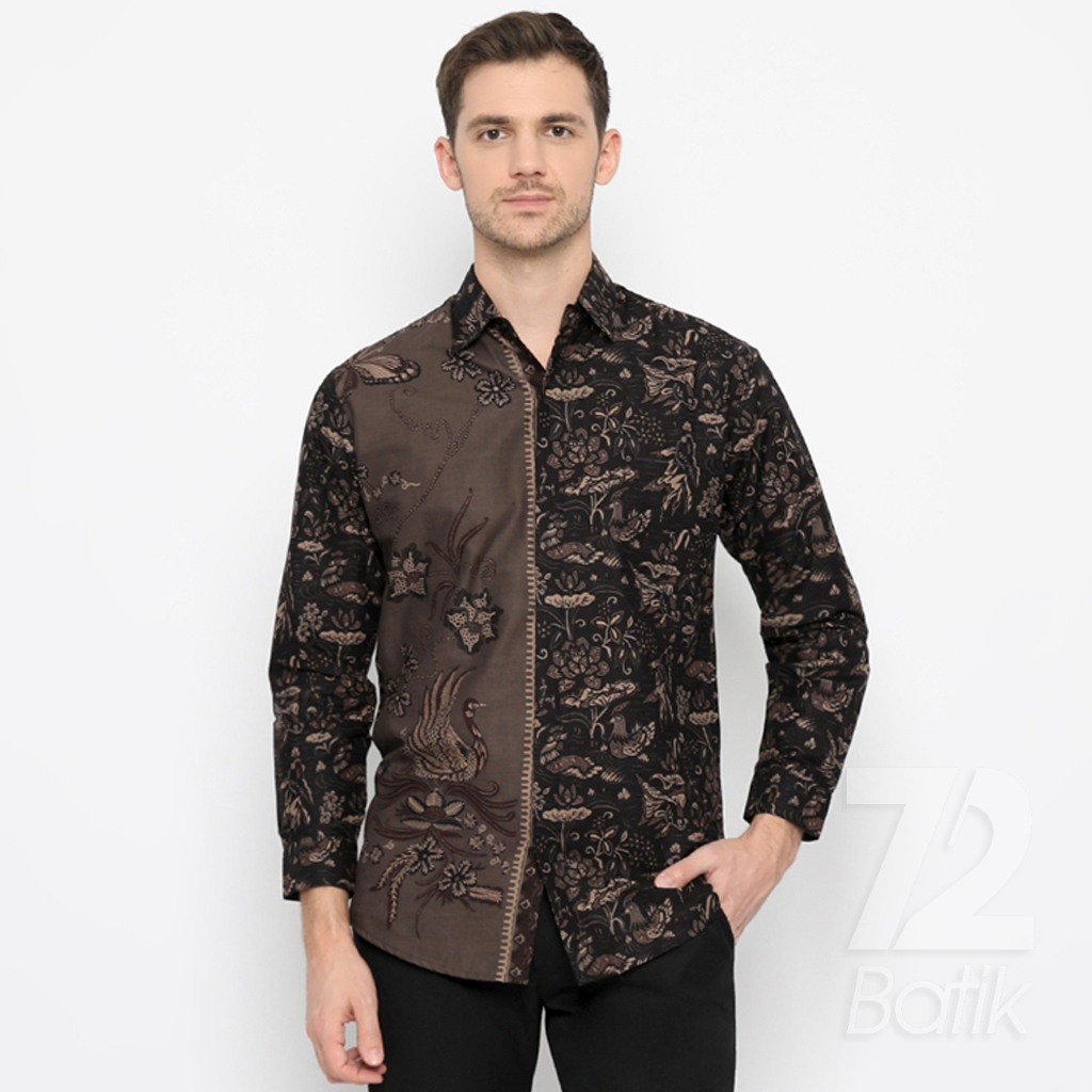 KEMEJA BATIK PRIA Lengan Panjang Premium Two Tone Pagi Sore Elegant Warna Coklat Earthy Brown Mocha Mousse 722392 Cap 72