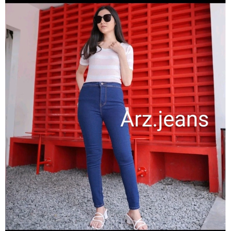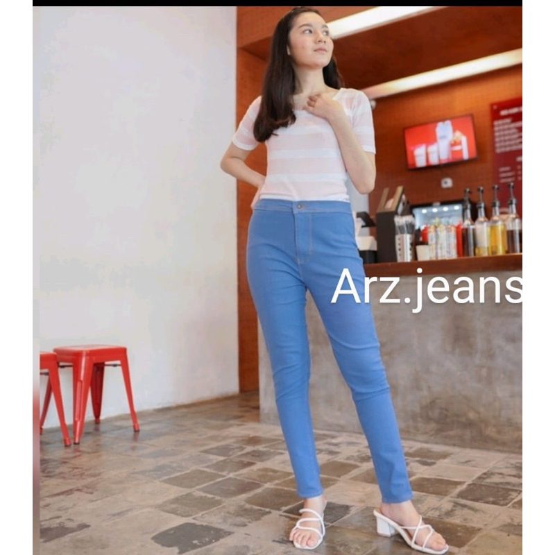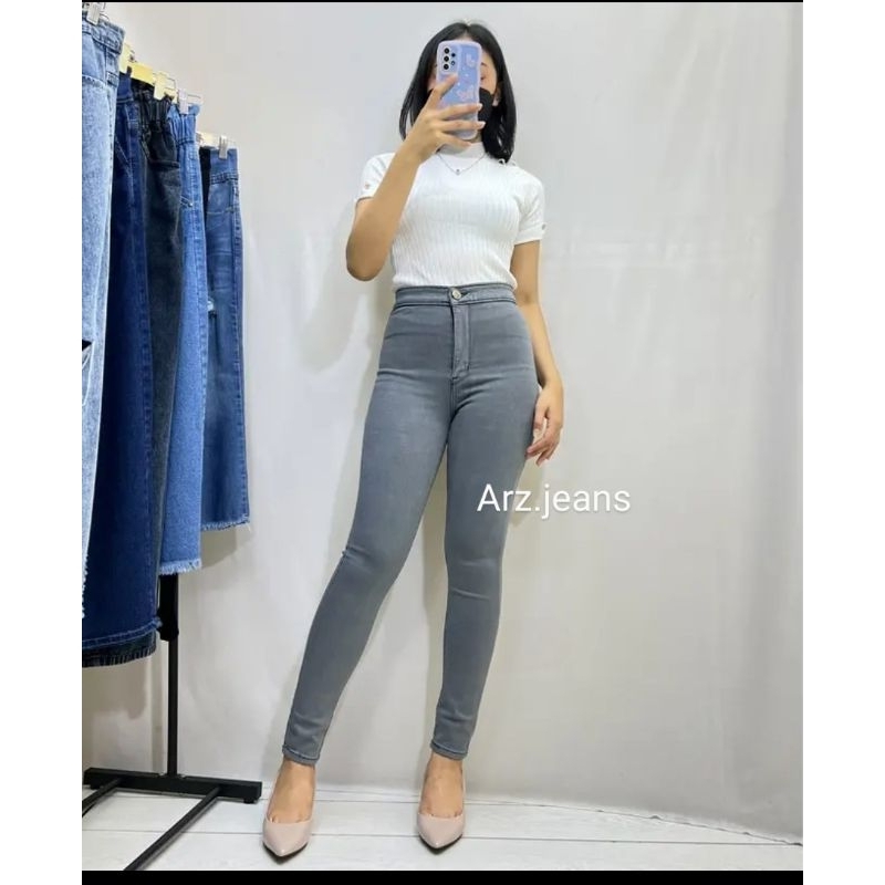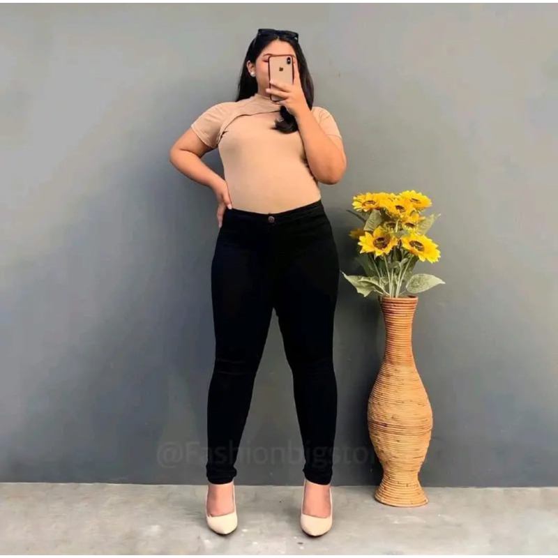 Highwaist jeans Pensil Jumbo Pensil Wanita Denim Panjang Hitam Tebal Nyaman