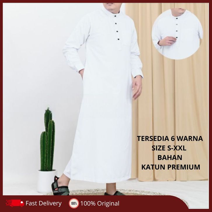 Jubah Pria Dewasa Premium polos Lengan Panjang Manset Kancing Snap Bahan Katun Ukuran S-XXL