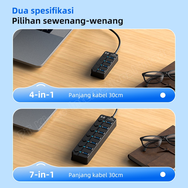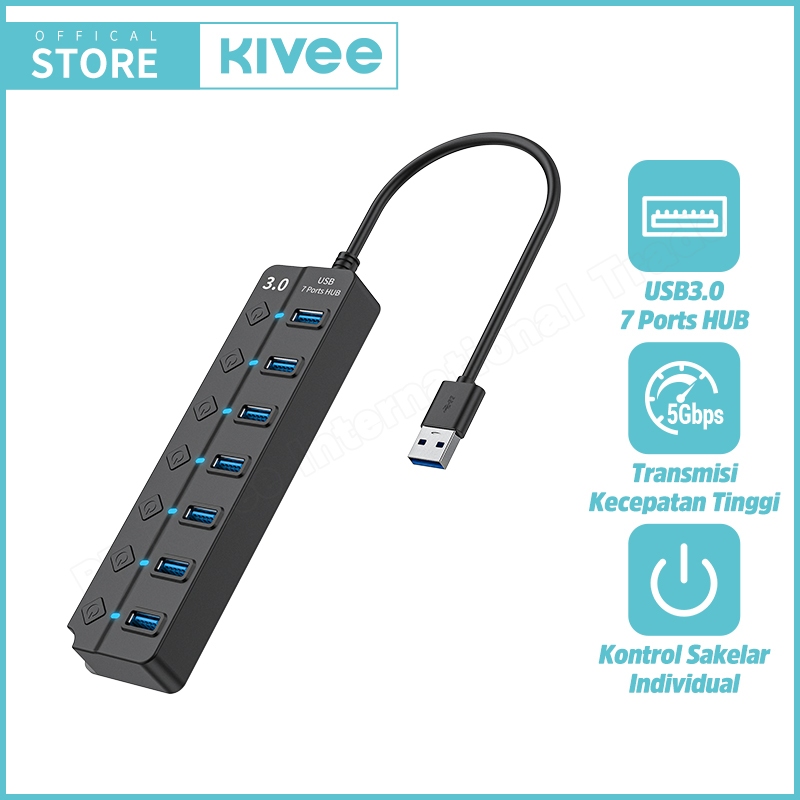 (HOT) KIVEE USB Hub 7-in-1 USB 3.0 5Gbps saklar independen KV-AD22 Black Aksesoris Desktop & Laptop