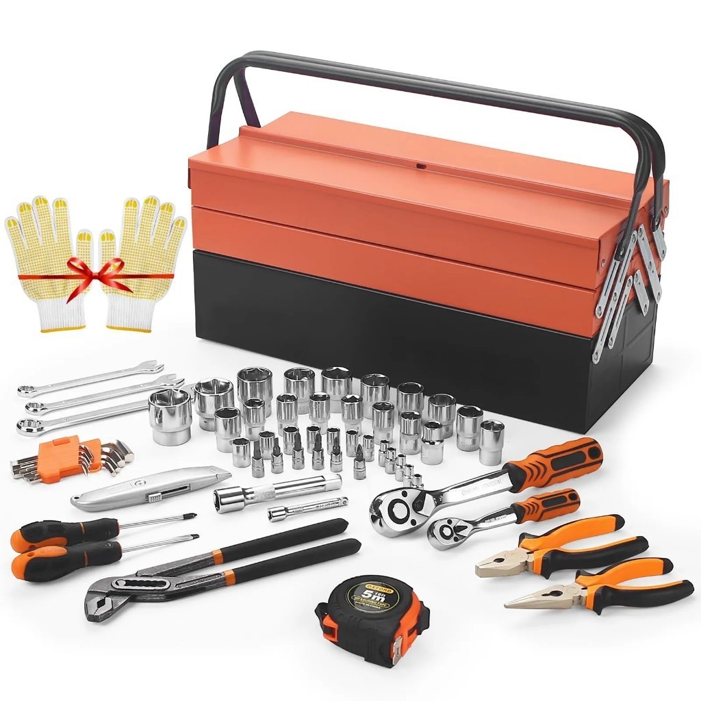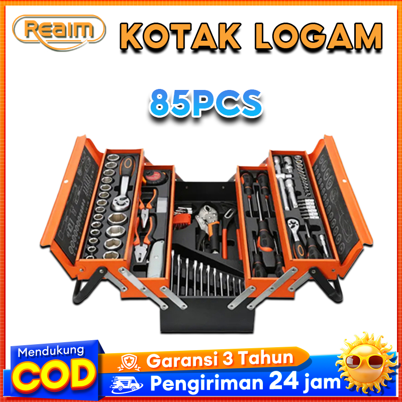 [Mall] REAIM SET PERKAKAS UNTUK SEPEDA MOTOR SET KUNCI SOKET TUGAS BERAT DENGAN KOTAK LOGAM 85/187PCS