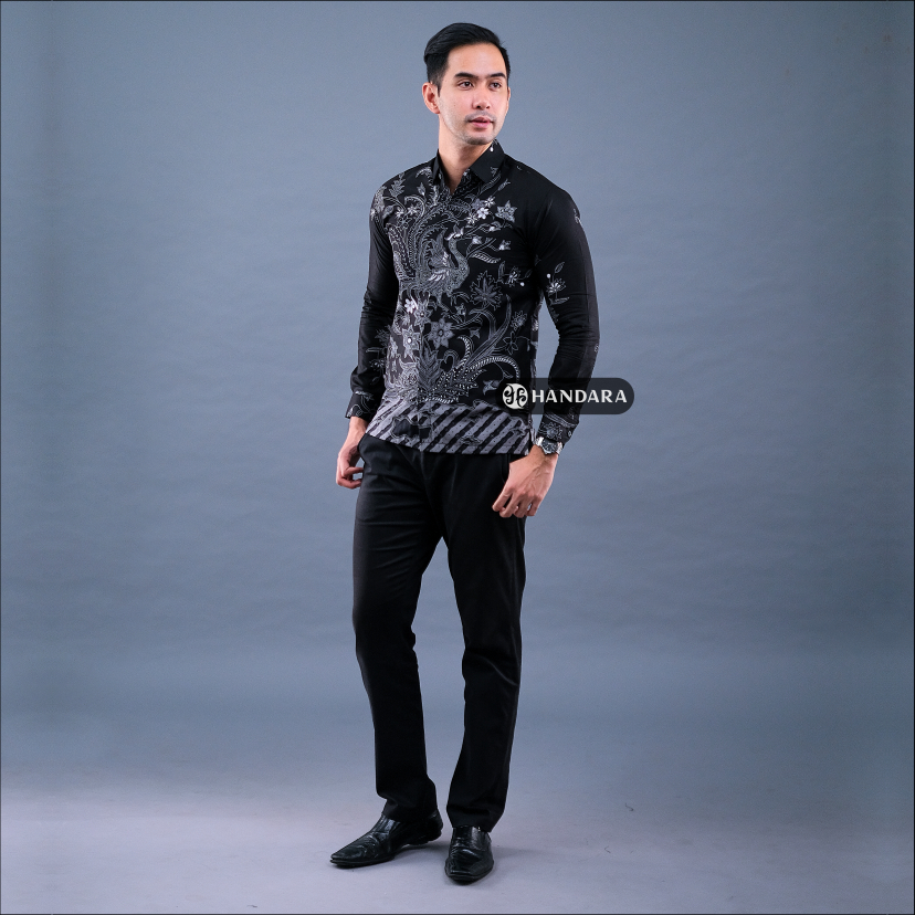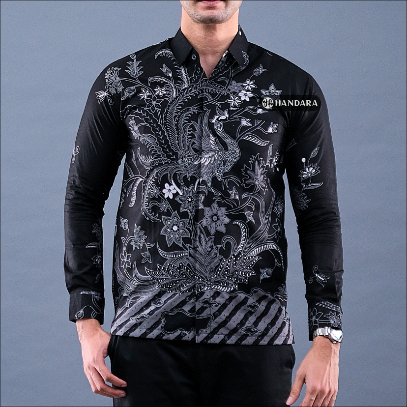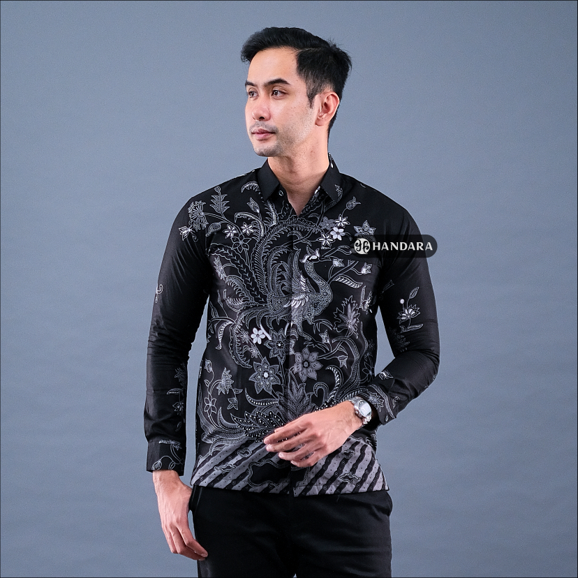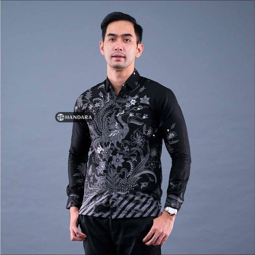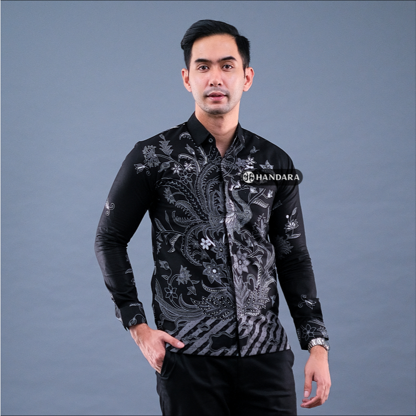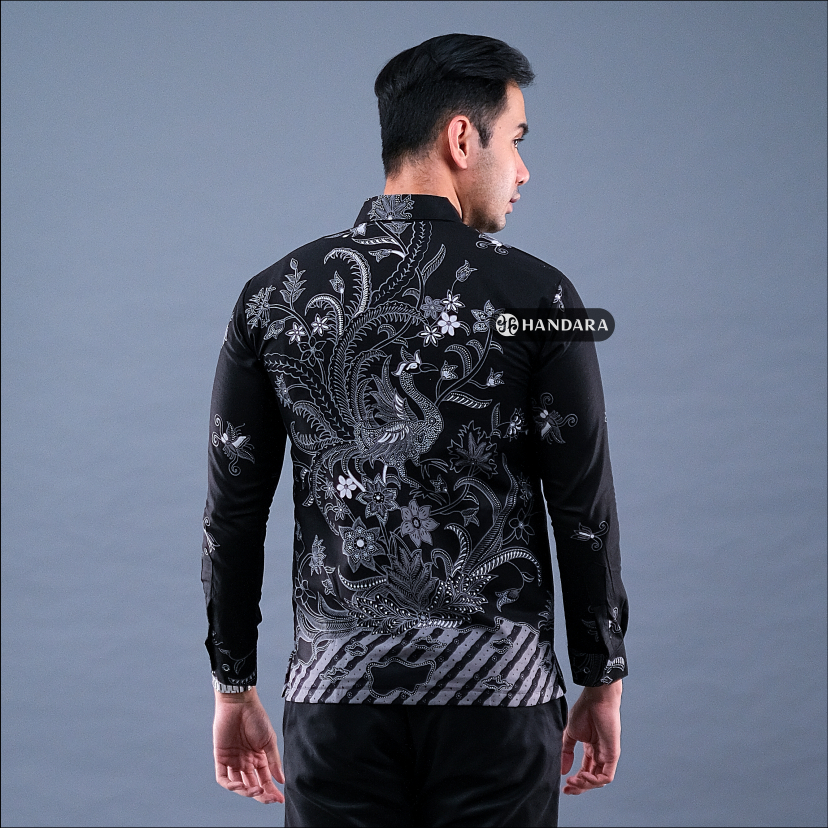Handara Batik Premium Pria Lengan Panjang Slim Fit Furing - Srigunting Hitam