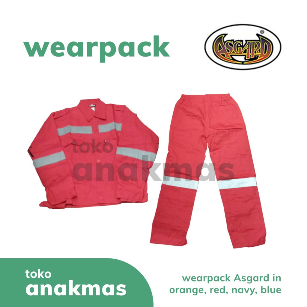 Baju Wearpack Asgard Coverall Terusan/Atasan/Atasan + Bawahan Warna Orange/Biru/Merah/Biru Donker