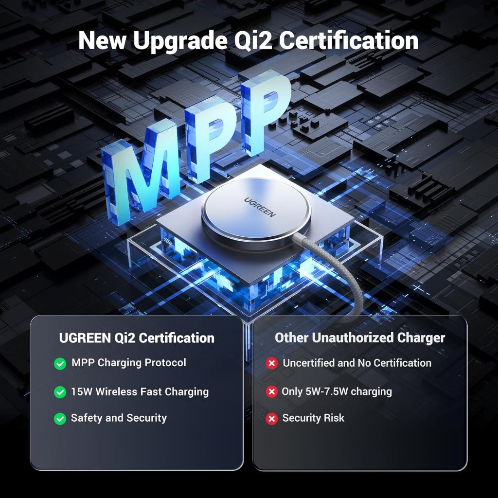 UGREEN Qi2 Wireless Charger Magnetic Fast Charging 15W For iPhone & Airpods Series