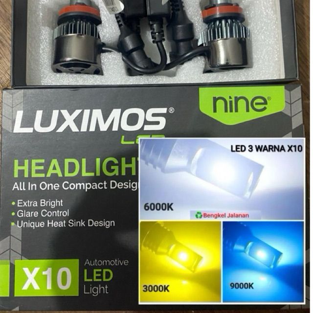 LAMPU LED FOGLAMP HEADLAMP MOBIL LED LUXIMOS LED H11 3 WARNA SUPER BRIGHT