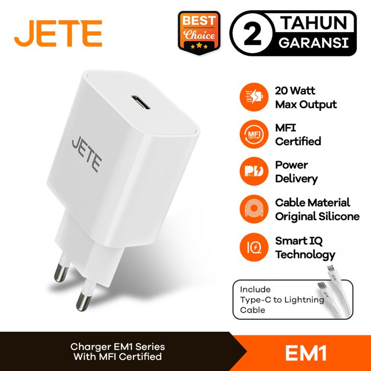 charger lightning Charger MFI Iphone 20W Plus Cable Type C to Lightning JETE EM1 - Garansi 2 Tahun RTL