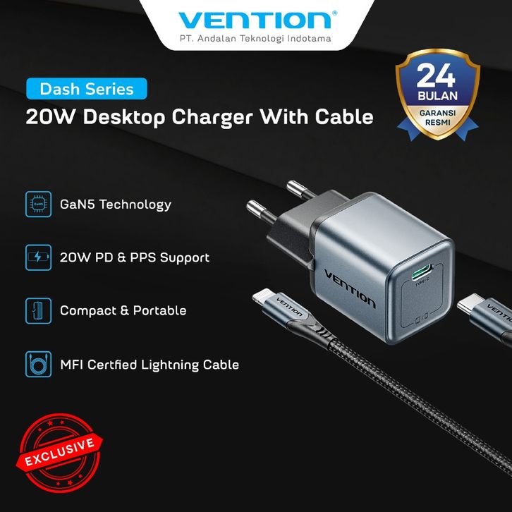 charger lightning Vention GaN Charger GaNDash GaN Dash Kepala Adaptor 20W 30W 70W 100W PD PPS Bundling USB Type C/Light