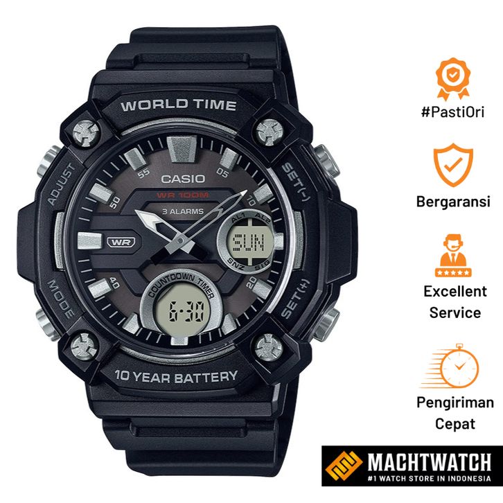 Jam Tangan pria Analog Digital Casio Standard AEQ-120W-1AVDF AEQ120W World Time Black Resin Band