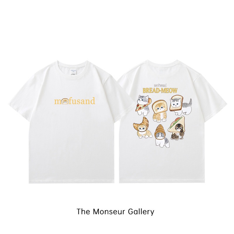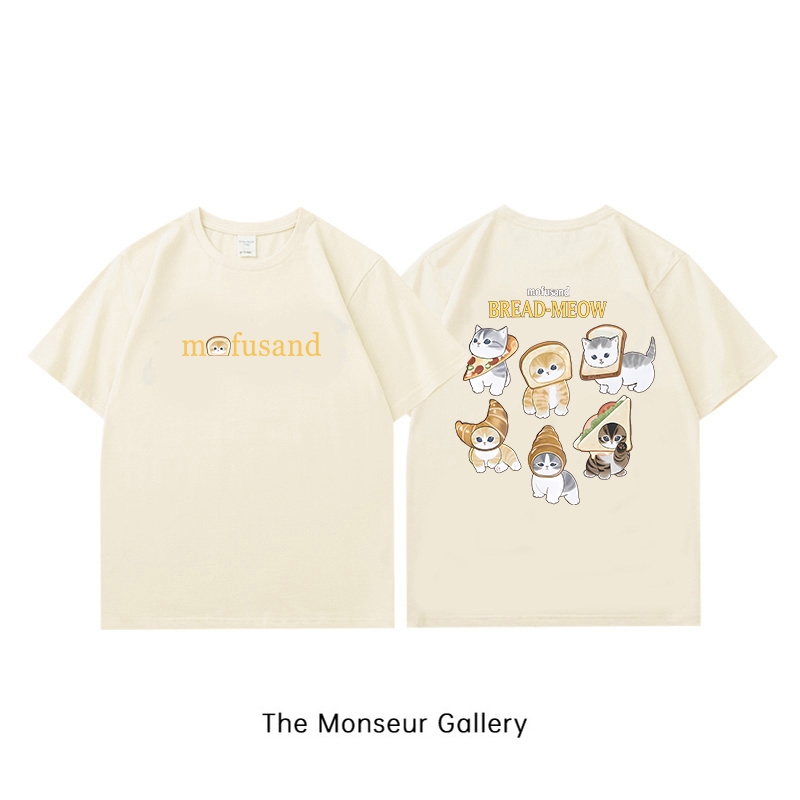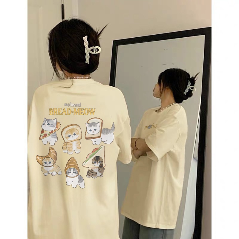 THE MONSEUR GALLERY KAOS WANITA OVERSIZE CARTOON MOFUSAND BREAD-MEOW STYLE BAJU ATASAN WANITA TERBARU | KAOS BAJU CREAM