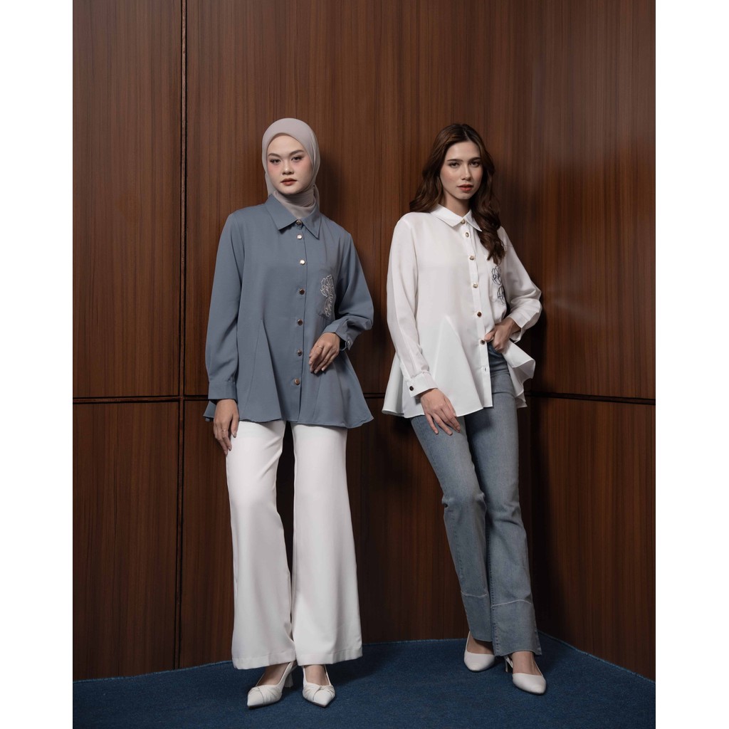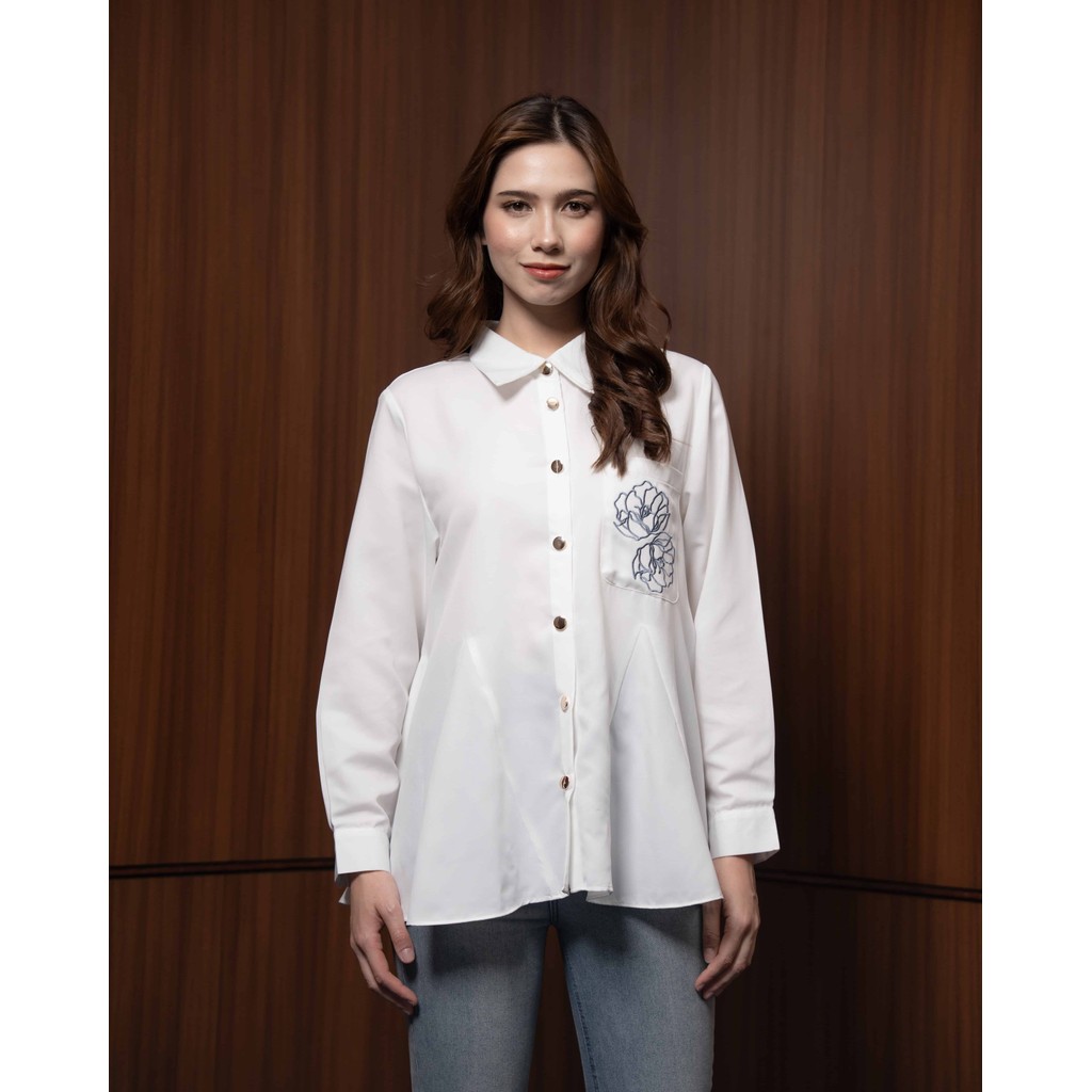 MAYOUTFIT ALAYNA SHIRT | KEMEJA BASIC WANITA MOTIF EMBRODERY BORDIR BUNGA