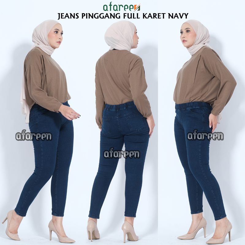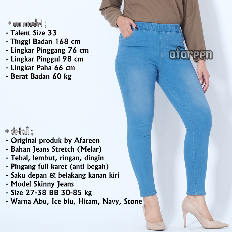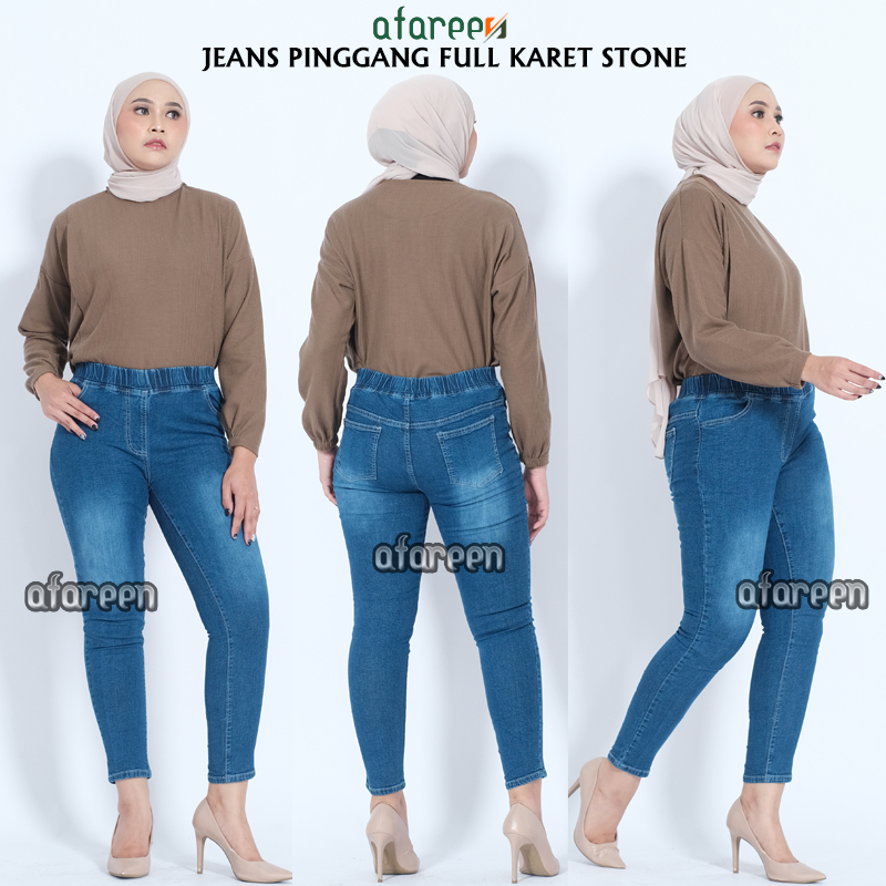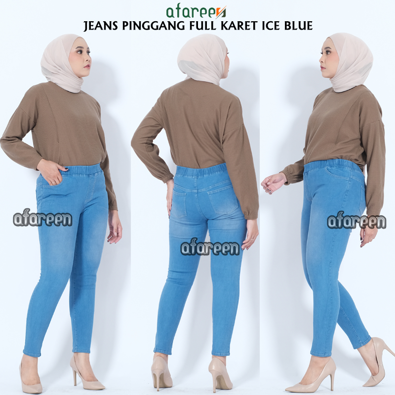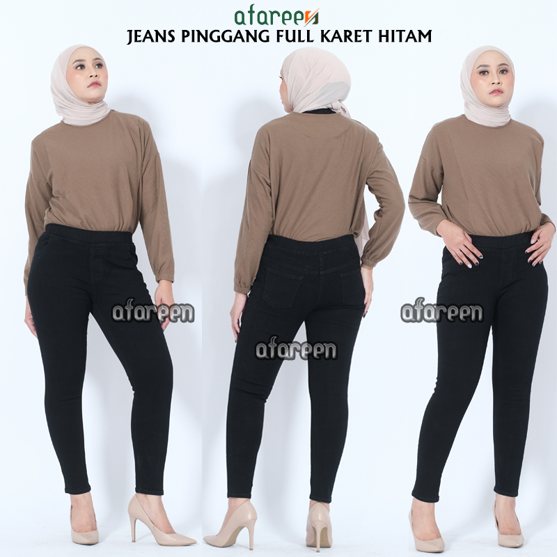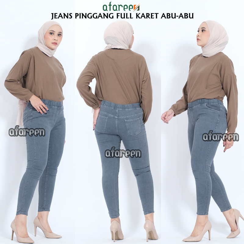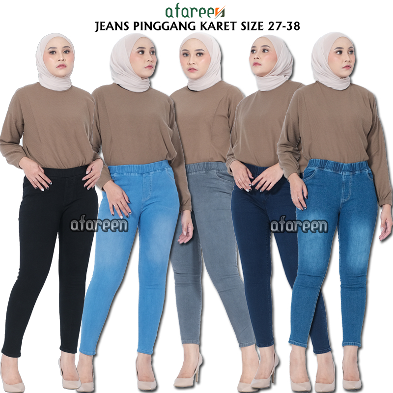 AFAREEN - Celana Jeans Pinggang Karet Wanita | Legging Jeans Pinggang Karet Melar Size 27-43