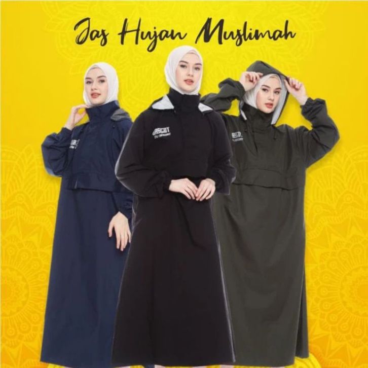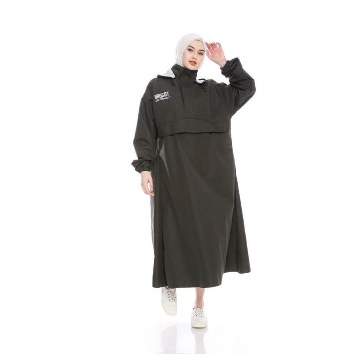 Jas Hujan Gamis BASCOT Saku Kanguru Mantel Hujan Muslimah Pria Wanita Dewasa
