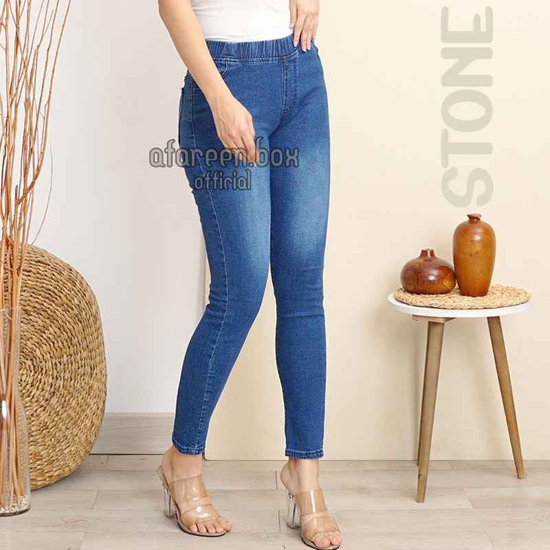 AFAREEN - Jeans Pinggang Karet Jumbo Legging Jeans Pensil Celana Panjang Jeans Wanita 27-43
