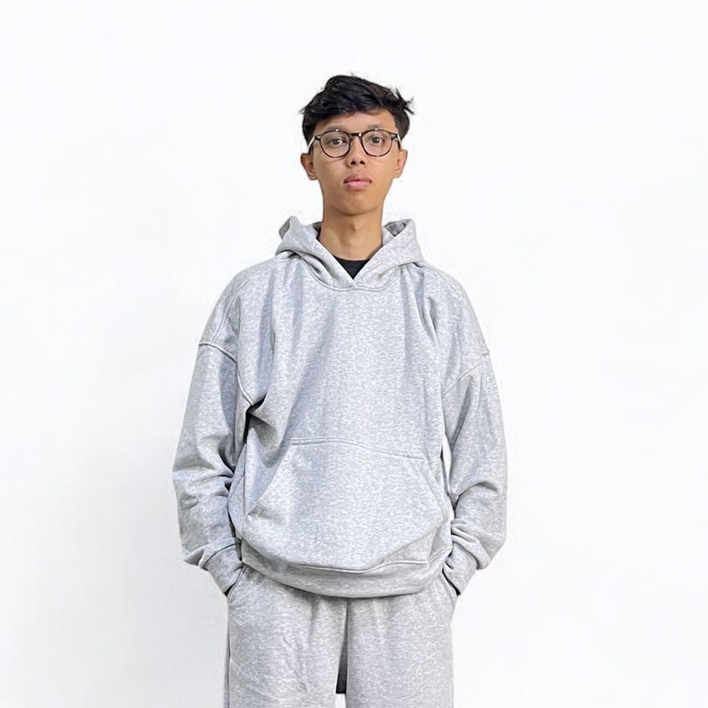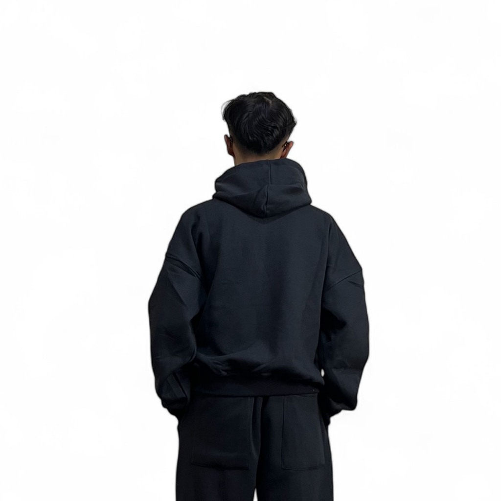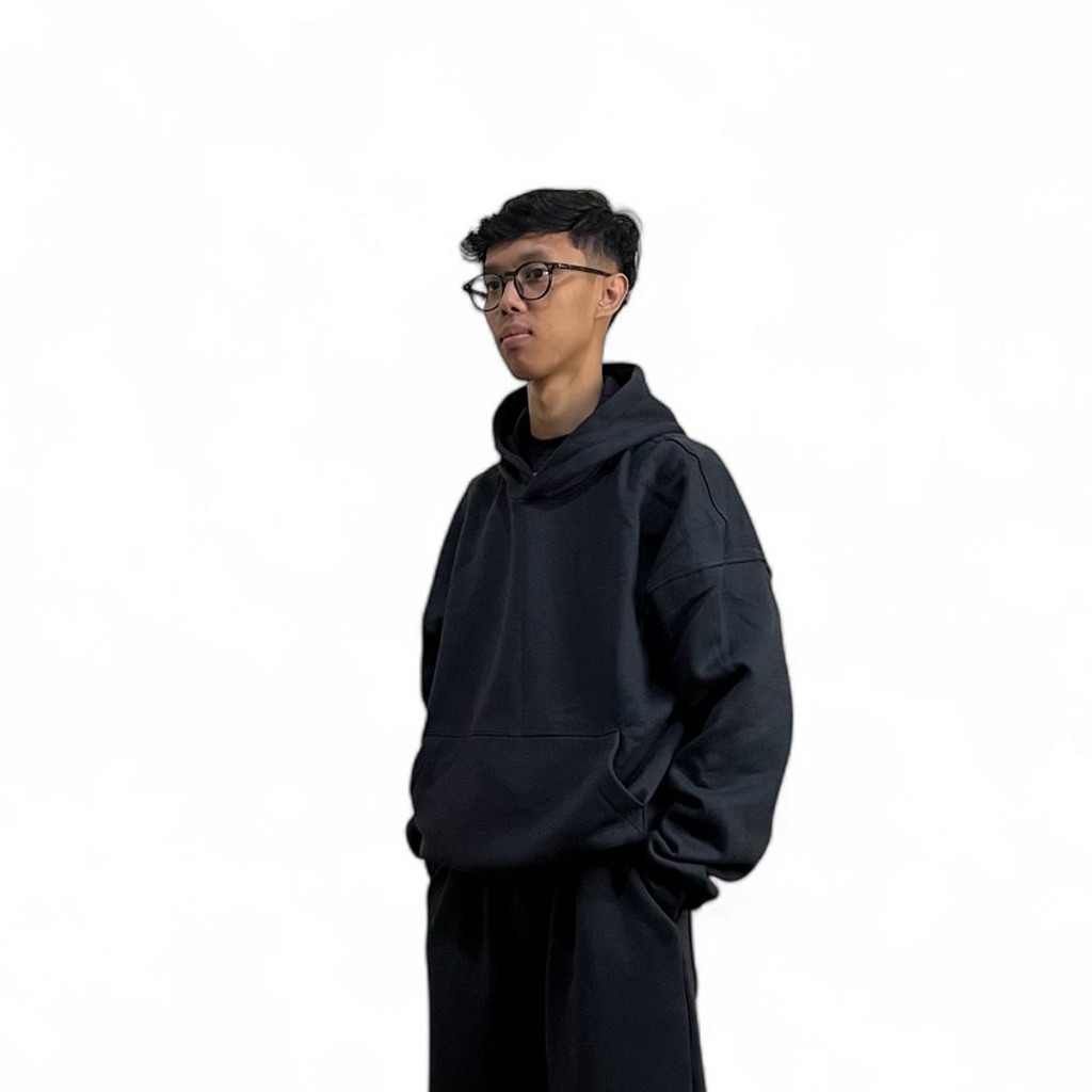 ERFOLGREICH - Hoodie Boxy Oversize Hitam Pria Wanita Cotton Fleece Tebal 300 330 GSM Boxy Fit Polos Cotton Fleece Heavyweight