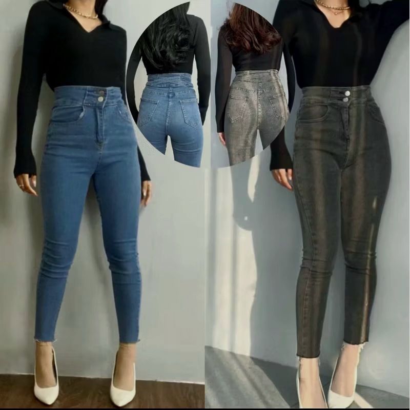 Drex_fa21 - Celana Jeans Pensil Wanita Hightwaist J32 Celana Jeans Skinny Stretch Melar Wanita Terbaru Pinggang ( X )