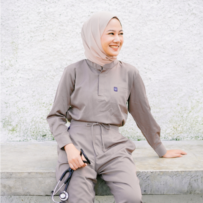 Baju Jaga MANDARIN LS - ASH BROWN Scrubs Theatre Blues Cardinal Lengan Panjang