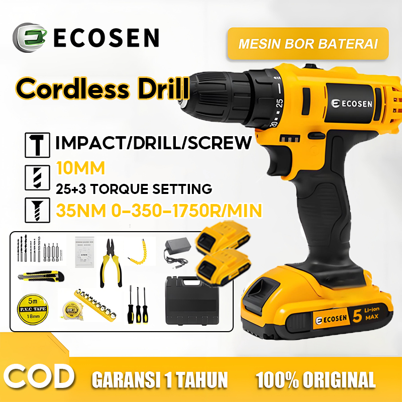 [Mall] ECOSEN MESIN BOR BATERAI BOR LISTRIK SET LENGKAP BOR IMPACT BATERAI TANGAN CORDLESS DRILL BATTERY BOR CORDLESS POWER DRILLS KIT CORDLESS