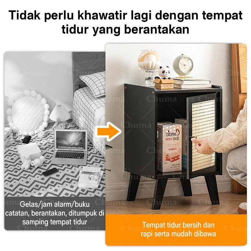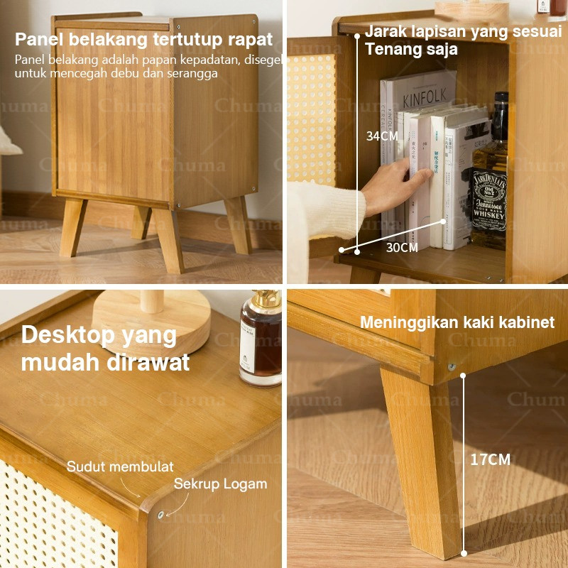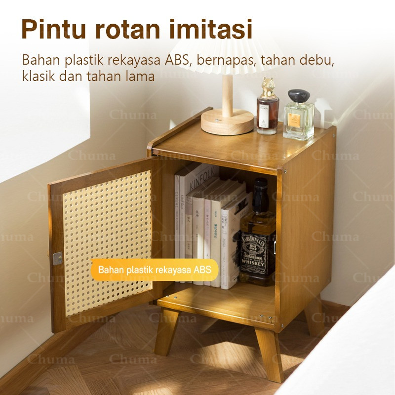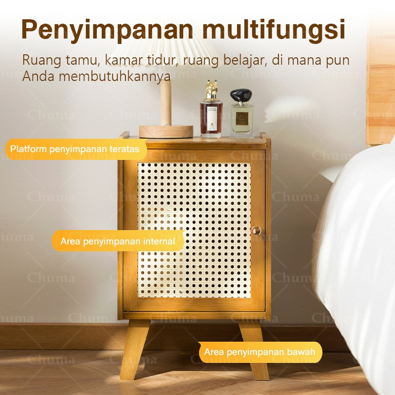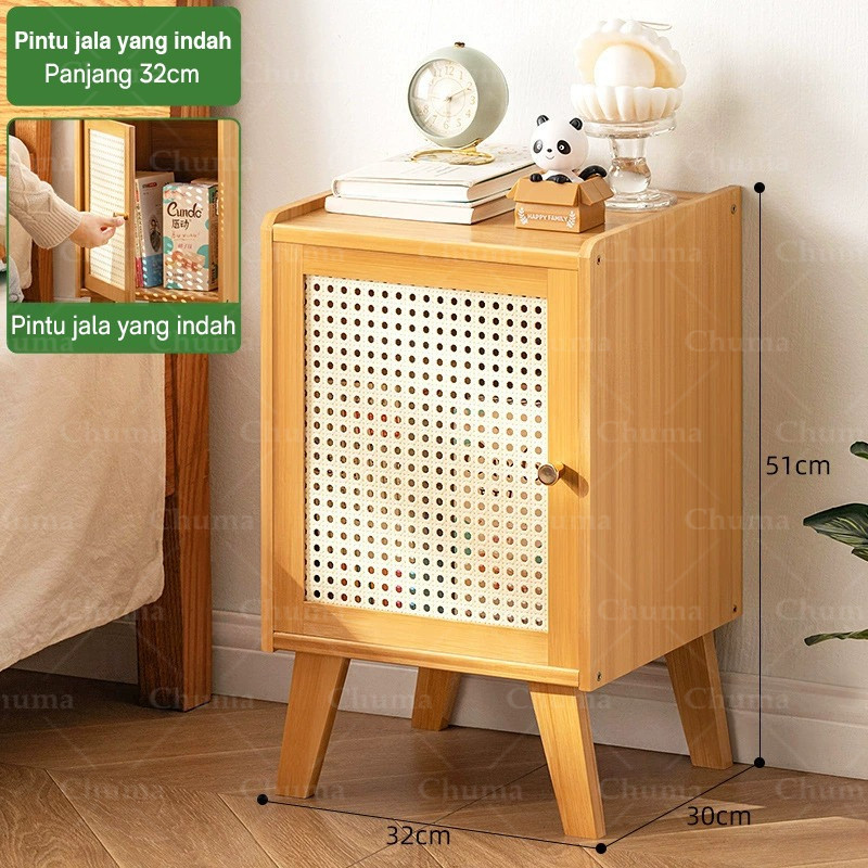 [Star] Bambu&Garansi Meja Kecil Rotan Kayu Solid / Lemari Samping Tempat Tidur / Rak Sudut Serbaguna Minimalis zyp