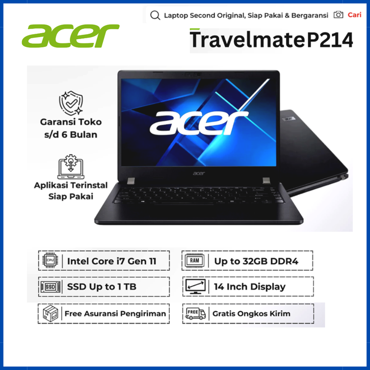 Laptop Acer Terbaru TravelMate P214 i7 / i5 Gen 11 8GB 16GB 512GB Second Bergaransi Siap Pakai Original