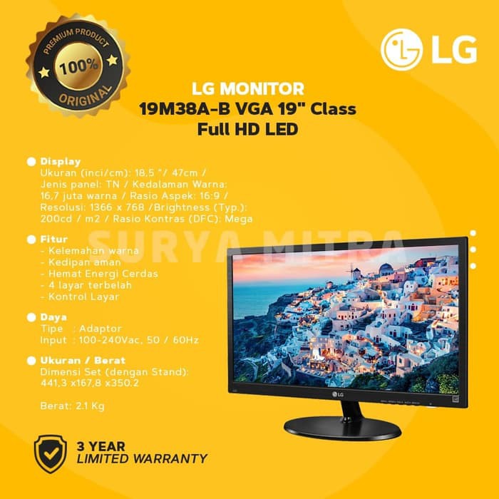 Monitor LG 19" 19M38A / 19M38L VGA HDMI