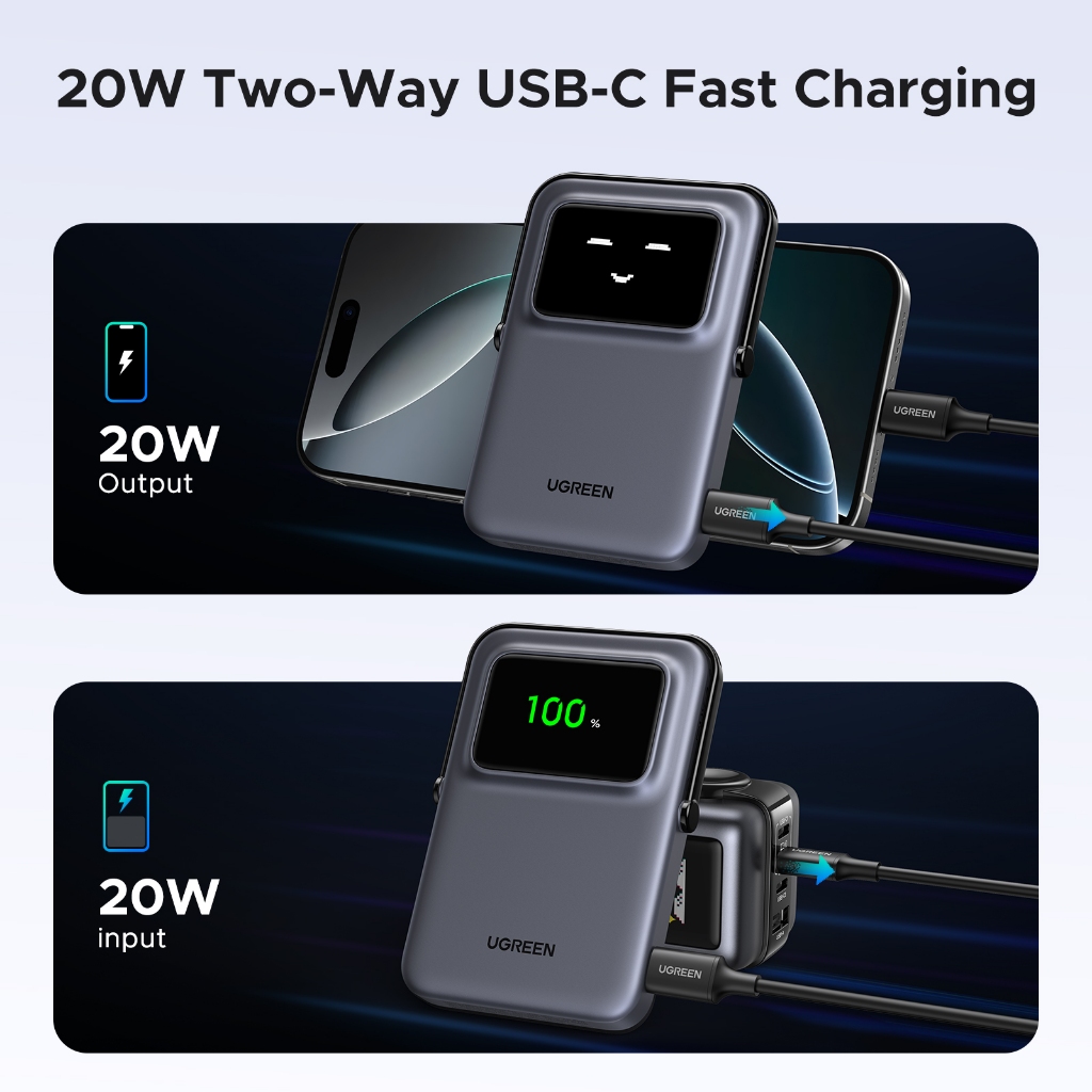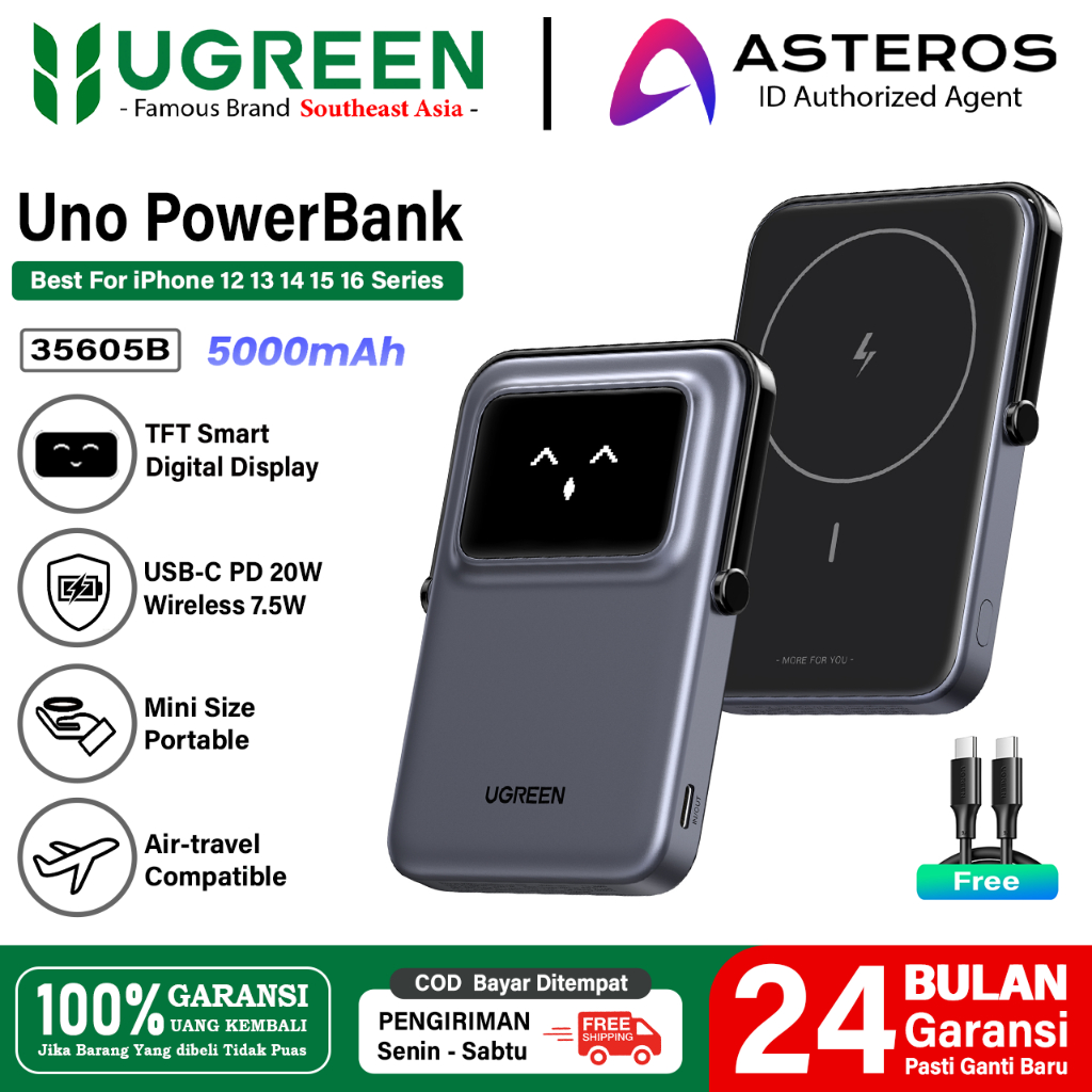 UGREEN Uno PowerBank Magsafe Wireless Fast Charging PD 20W TFT Smart Display 5000mAh
