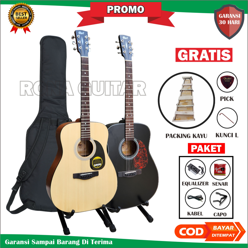 Gitar Akustik Elektrik Cort Jumbo Custom Tanam Besi Aktif Bonus Lengkap Gratis Packing Kayu
