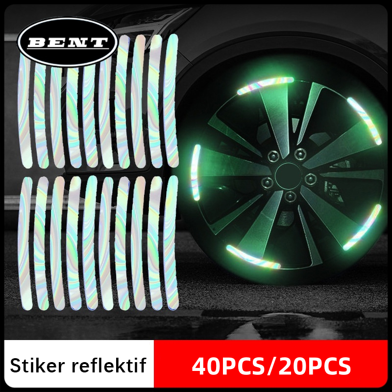 [Mall] 【40pcs/20pcs】sticker reflektor velg / universal pvc stiker roda peringatan melengkung mobil motor sepeda