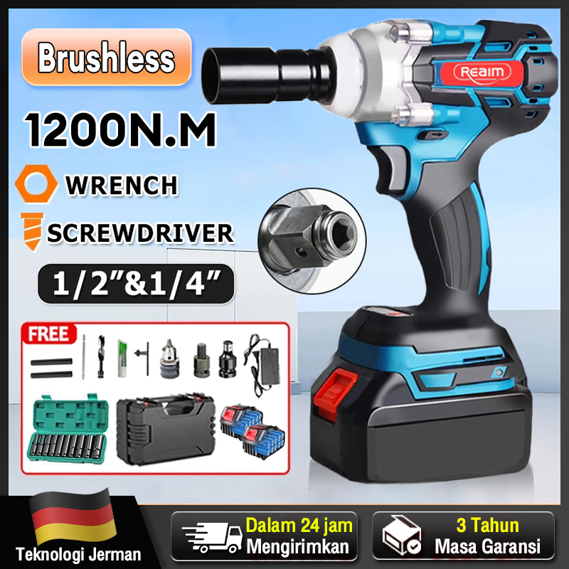 [Mall] REAIM CORDLESS 680N.M IMPACT WRENCH BRUSHLESS 2 BATERAI IMPACT BATERAI MESIN BOR UNTUK BAUT MOBIL
