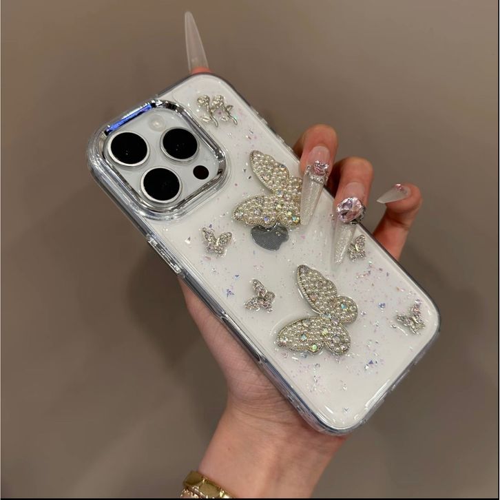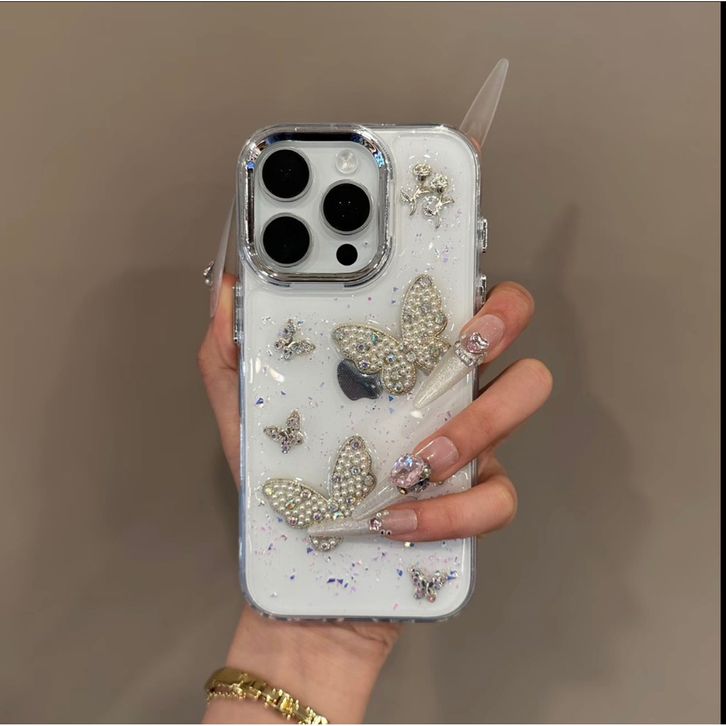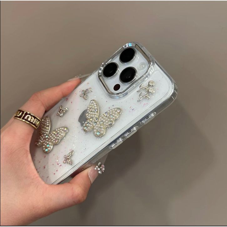 Casing iPhone IP 11 12 13 14 15 16 PRO MAX 14+ 15+ 16+ PLUS Premium Case Butterfly 3D Pearl Glitter Kupu-Kupu Mewah