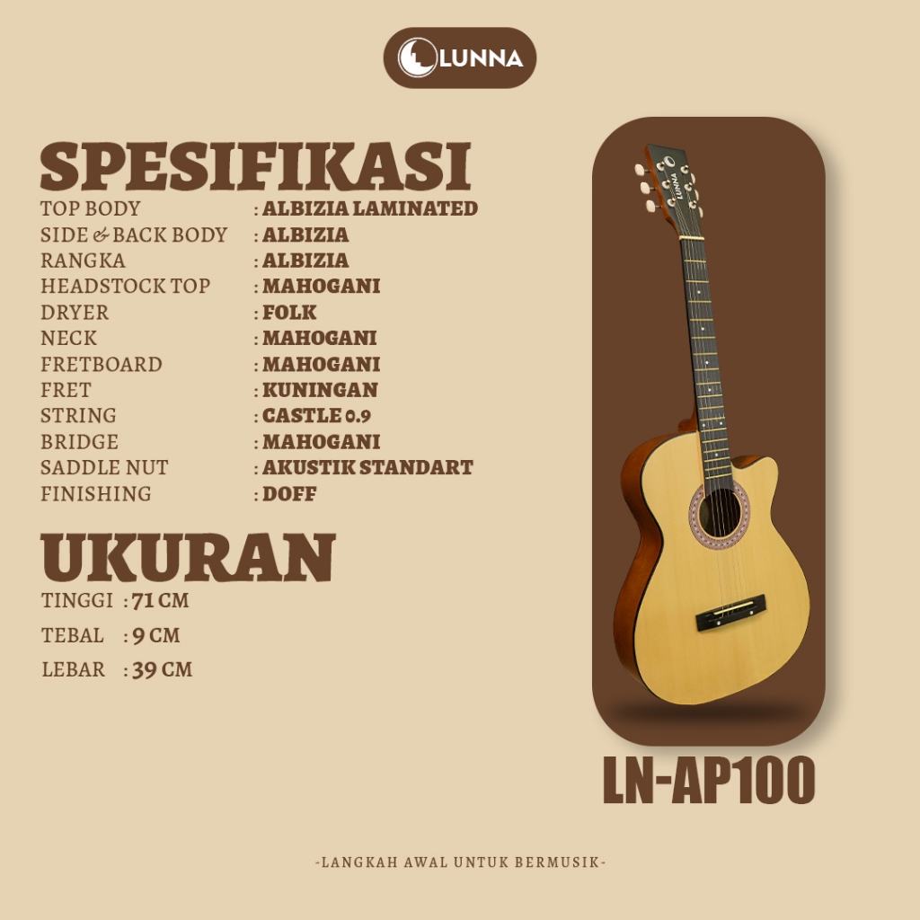 LUNNA Gitar Akustik LN - AP100 Senar Baja Model Cutway