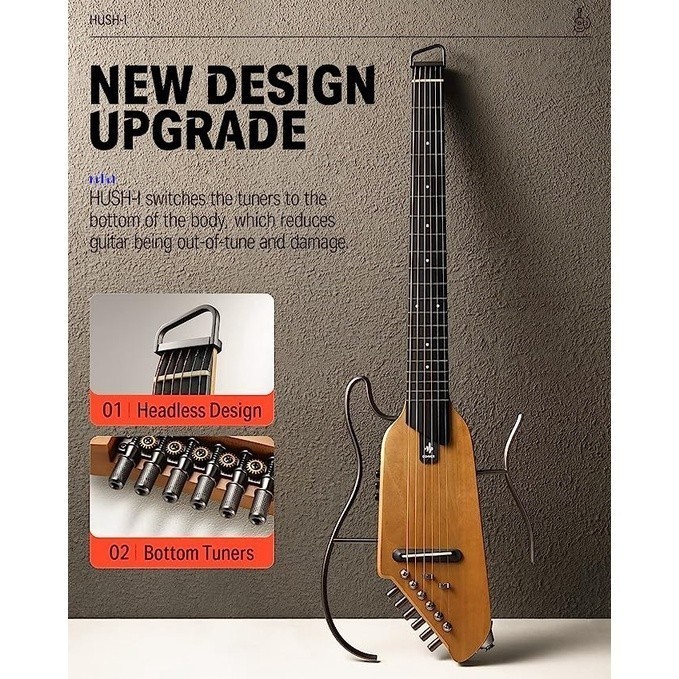 Donner Hush I Silent Guitar Portable Gitar Akustik Elektrik - Maple