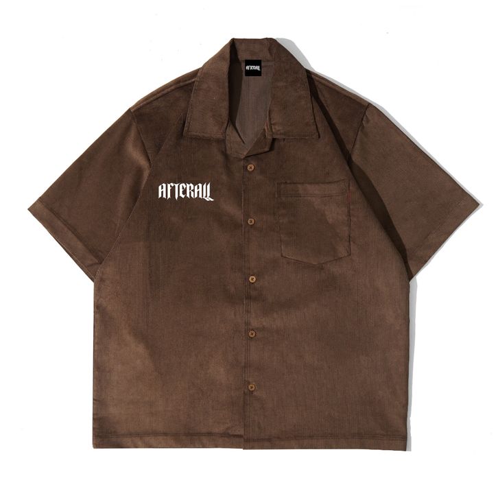 Afterall Anger Brown Work Shirt Corduroy Boxy Fit Kemeja Pendek Corduroy Bordir
