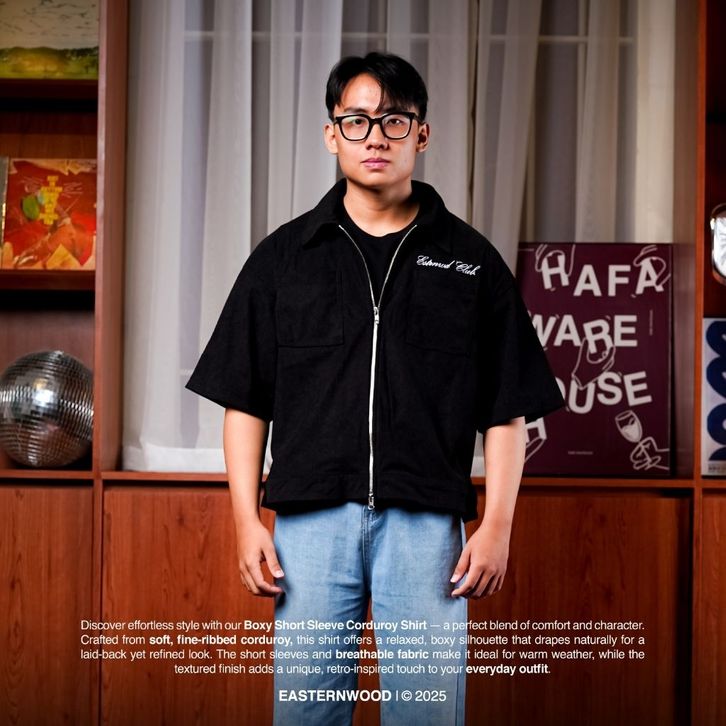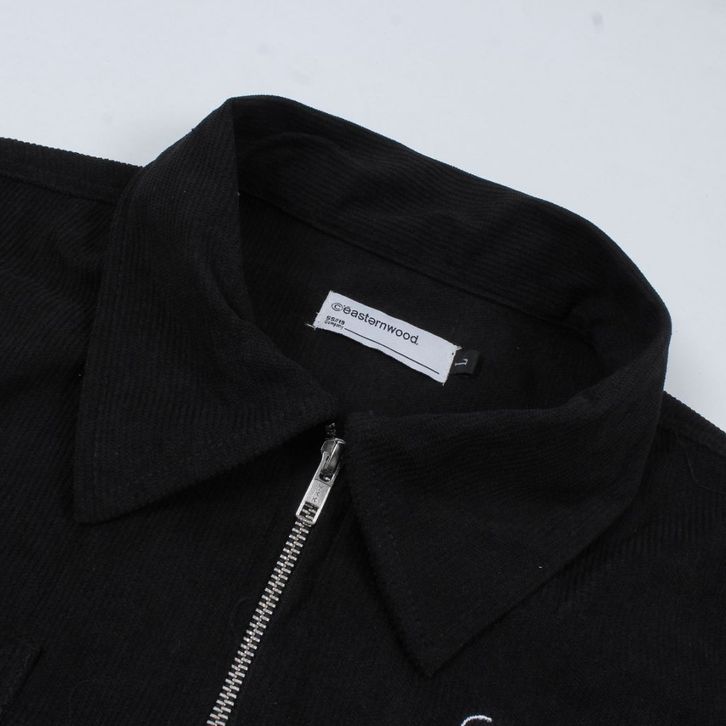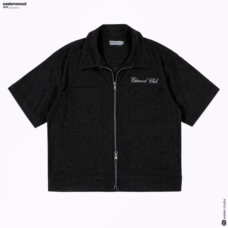 Easternwood Kemeja Corduroy Boxy Lengan Pendek Double Zipper Hitam Resleting