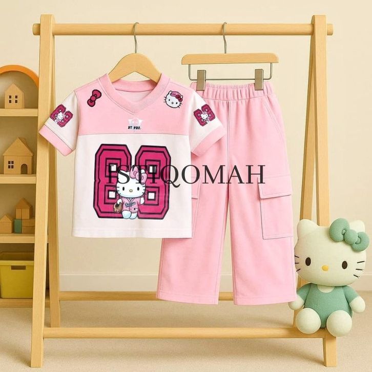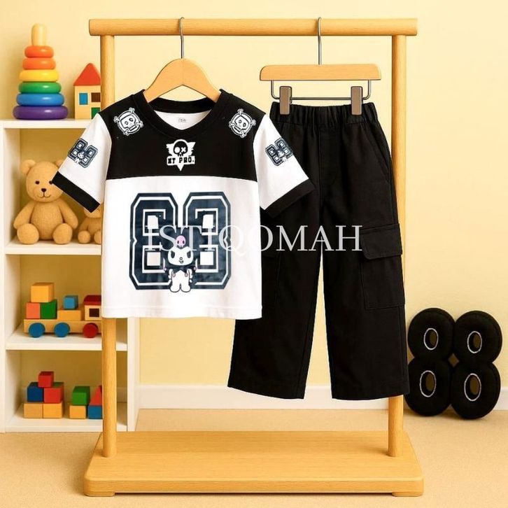 One Set Anak Jersey Celana Cargo Motif Kuromi 3-12 Tahun / Baju Anak Perempuan