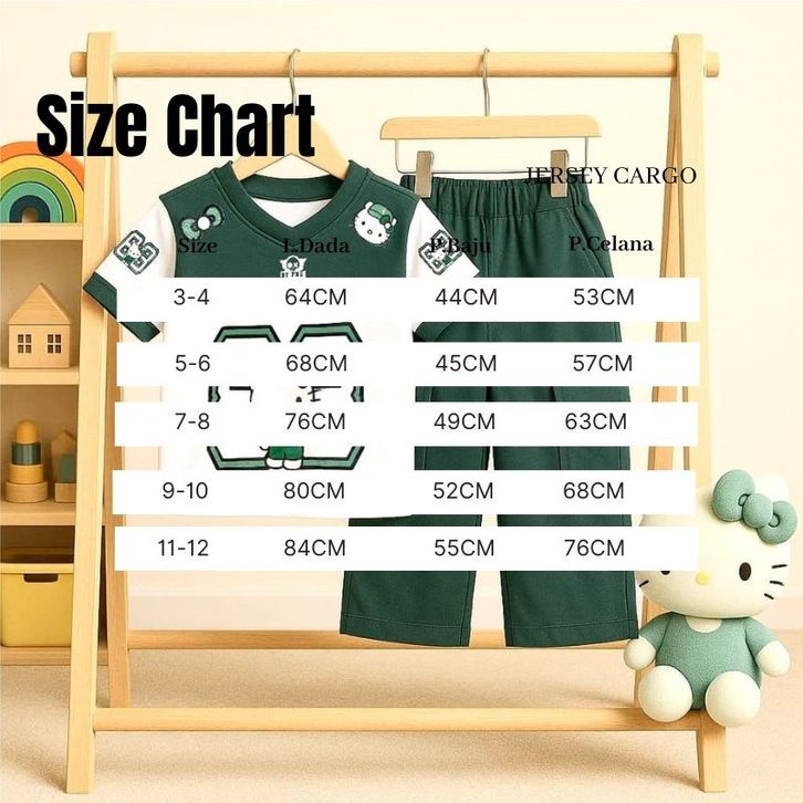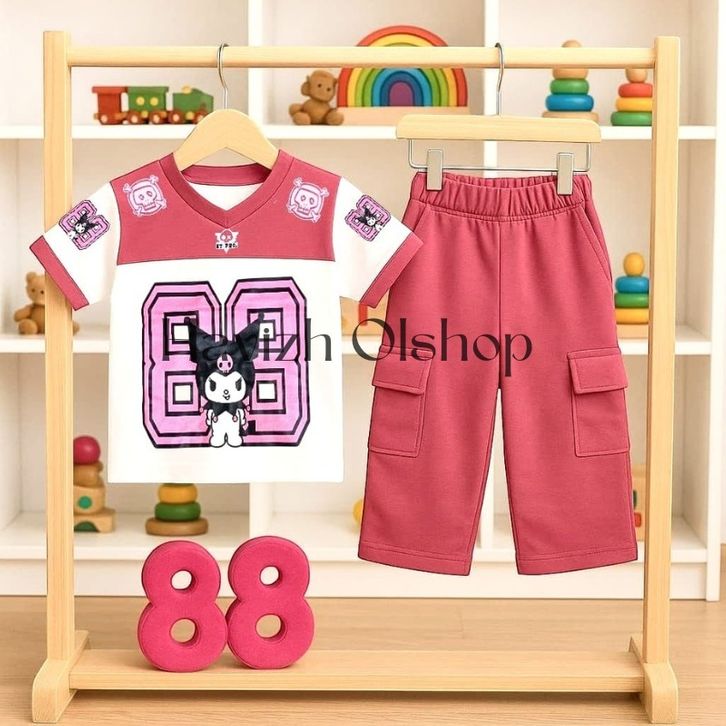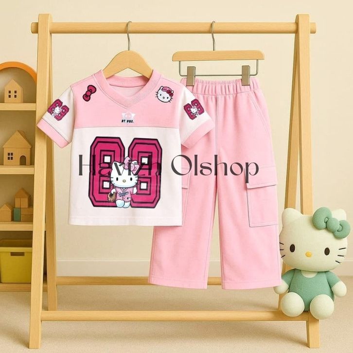 Setelan Anak Jersey Celana Cargo Motif Hello Kitty 3-12 Tahun / Jersey Anak / Baju Anak Unisex