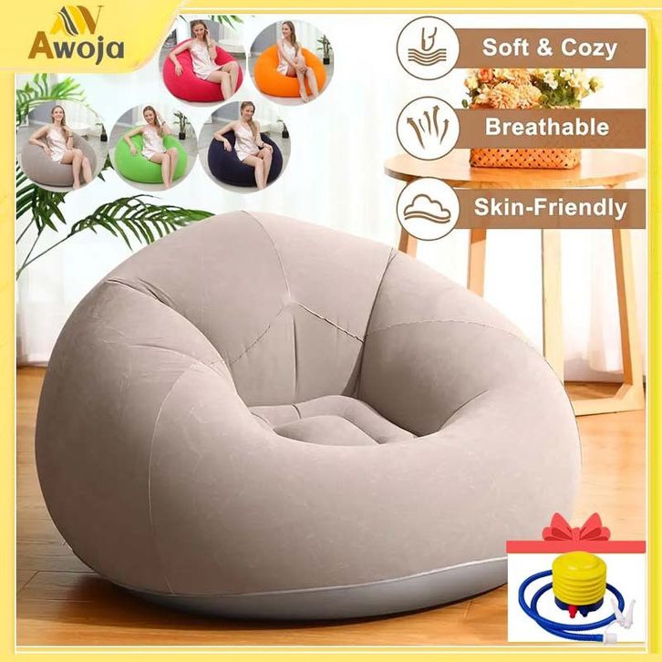 Gratis Pompa Sofa Bean Bag Aesthetic Sofa Santai Angin Inflatable Travel Portable Sofa Kursi Santai PVC Tebal Indoor